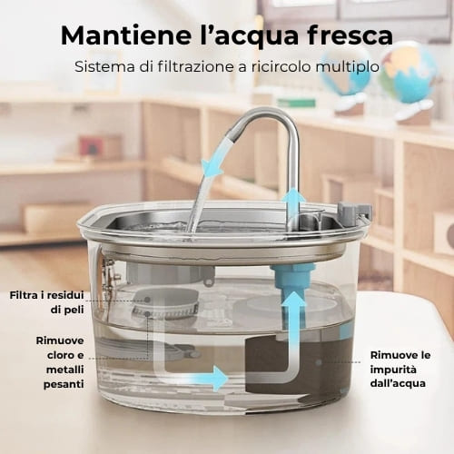 Potente quanto basta per mantenere l’acqua fresca e pulita, ma così discreta da non svegliare nemmeno il più leggero dei dormiglioni — umano o felino.